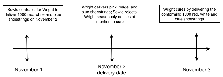 Assuming the loss was foreseeable at the time of contracting, Sowle should be able to recover the loss as consequential damages. The situation is the same as with 2-508(1), discussed earlier. If Wright had not cured, Sowle could have recovered and would be entitled to 2-712 damages: cover price minus contract price plus incidental and consequential damages less expenses saved. Where Wright does cure, Sowle should still be entitled to incidental and consequential damages.