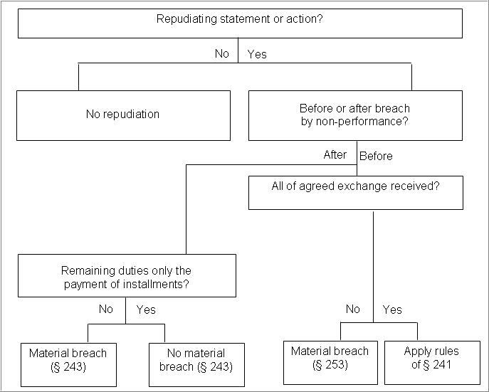 (1) If the remaining obligations of the person making the repudiating statement or action do not consist entirely of making installment payments (not related to each other), the repudiating statement or action is a material breach.