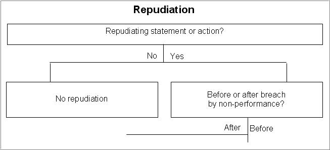 Different rules about material breach apply, depending on whether the repudiating statement occur before, at the same time as, or after a breach by non-performance.