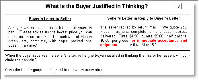 Even with the "for immediate acceptance and shipment" language, the buyer is not justified in thinking the buyer's