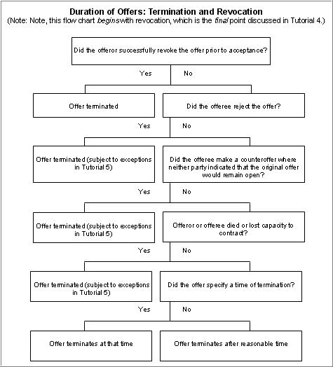 This tutorial concludes with revocation because it is the logical way to make the transition to the discussion in the next tutorial on limitations on the power to revoke. However, once you have mastered the material in the present tutorial, it is logical to begin your analysis of how long an offer stays open with the question of whether the offeror succeeded in revoking the offer.