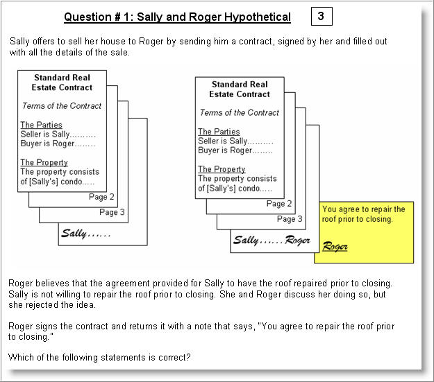 When Roger returns the signed contract with the note, he accepts Sally's offer.